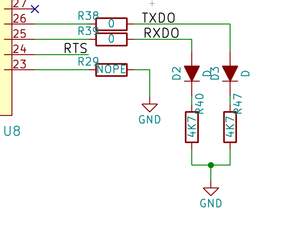 You don’t need to end up populating these parts when you go to production. Your low power product might not be able to spare the milliamps of current. You can either “turn down” the resistor brightness by using a higher value resistor or you can leave the LED out entirely when you’re certain you have a stable product.